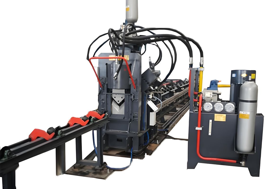 This machine is specifically engineered for drilling and stamping large-size, high-strength angle steel, a critical material in the fabrication of transmission line towers.
